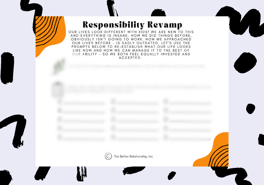 Our lives look different with kids! We are new to this and everything is insance. How we did things before, obviously isn't going to work. How we approach our lives before, is outdated. Use the prompts in this worksheet to re-establish what our life looks like now and how can manage it to the best of our ability so we both feel equally accepted and respected.